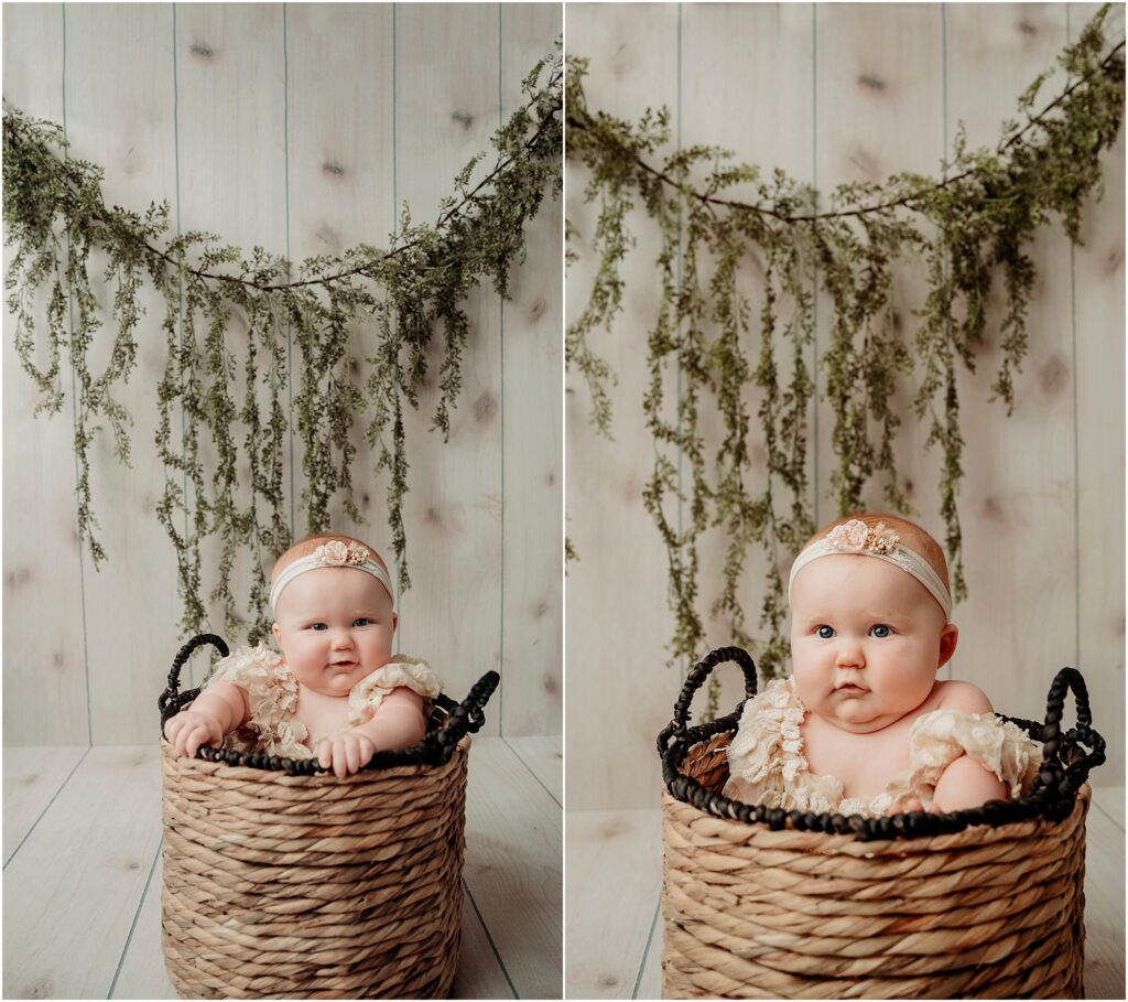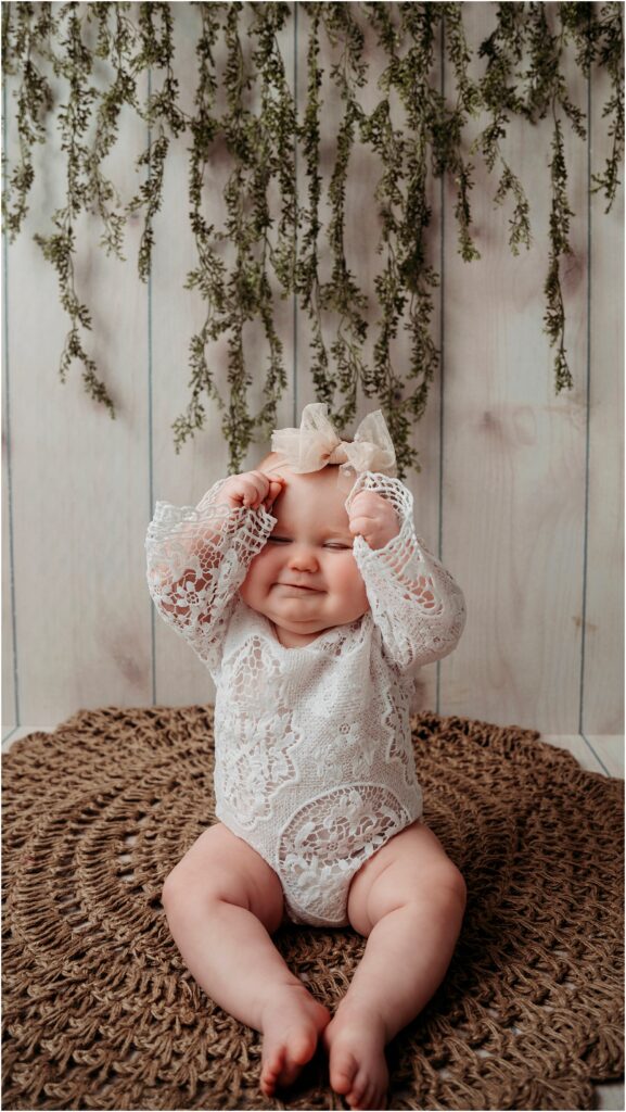 Meet the most adorable girl with the most perfect rolls! I had the pleasure of photographing the maternity session you can check out here. I have known her momma for quite some time so it was such an honor to be able to capture these special moments for her. Lottie here was full of personality and thankfully had no problem having my big camera in front of her little face. Her mom knew all the tricks to get the good smiles and I pulled a few out of my own sleeve to get her attention and have her show all the many faces. She is quite the pro and peek-a-boo and I loved getting to watch her joy from playing the game with her mom who was behind me.